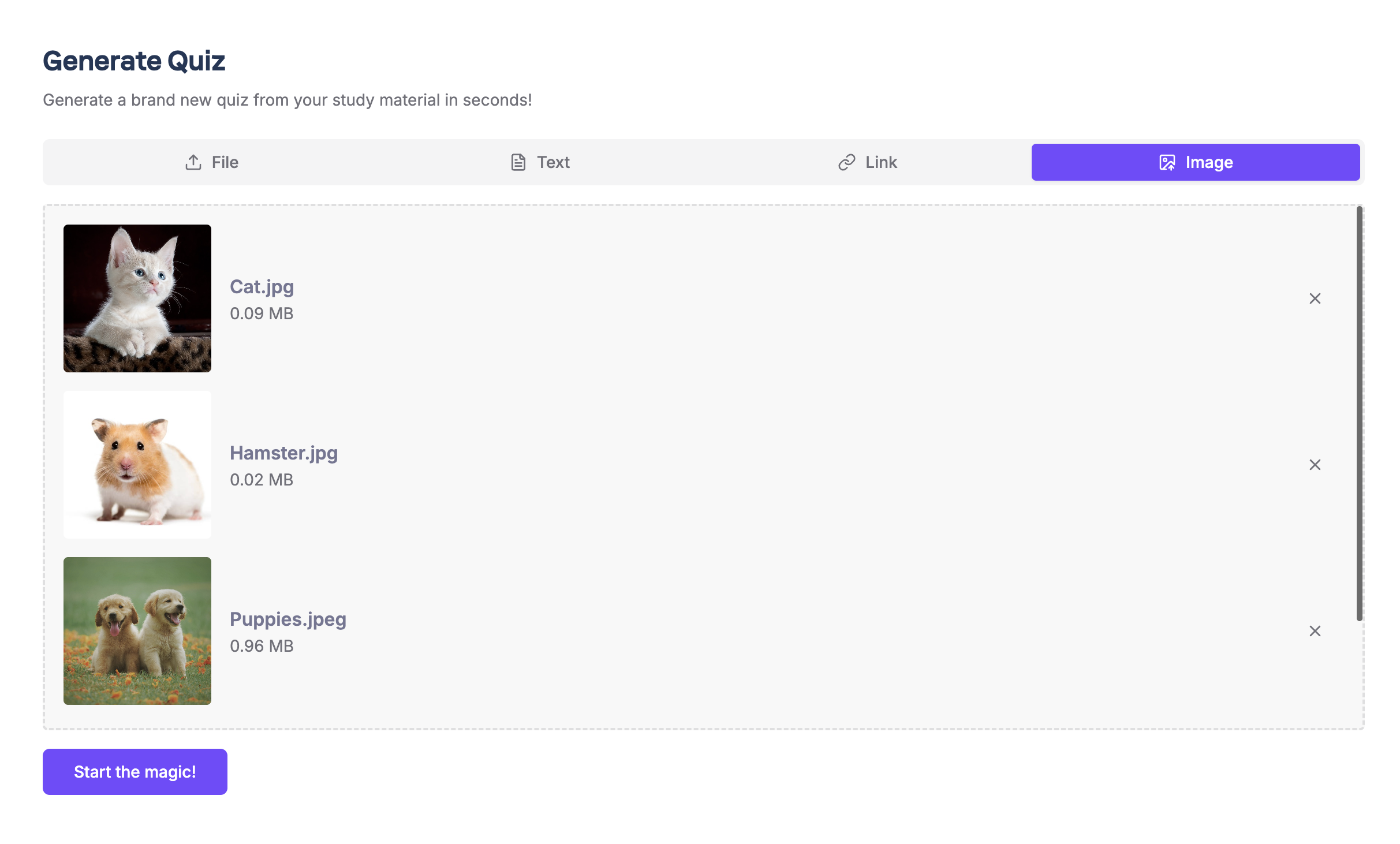 You can now generate quizzes and summaries with up to 5 images for context! This is a brand-new addition to our generation flow so please let us know if any unforeseen issues arise. Pro users will soon have access to up to 10 images for each generation.
