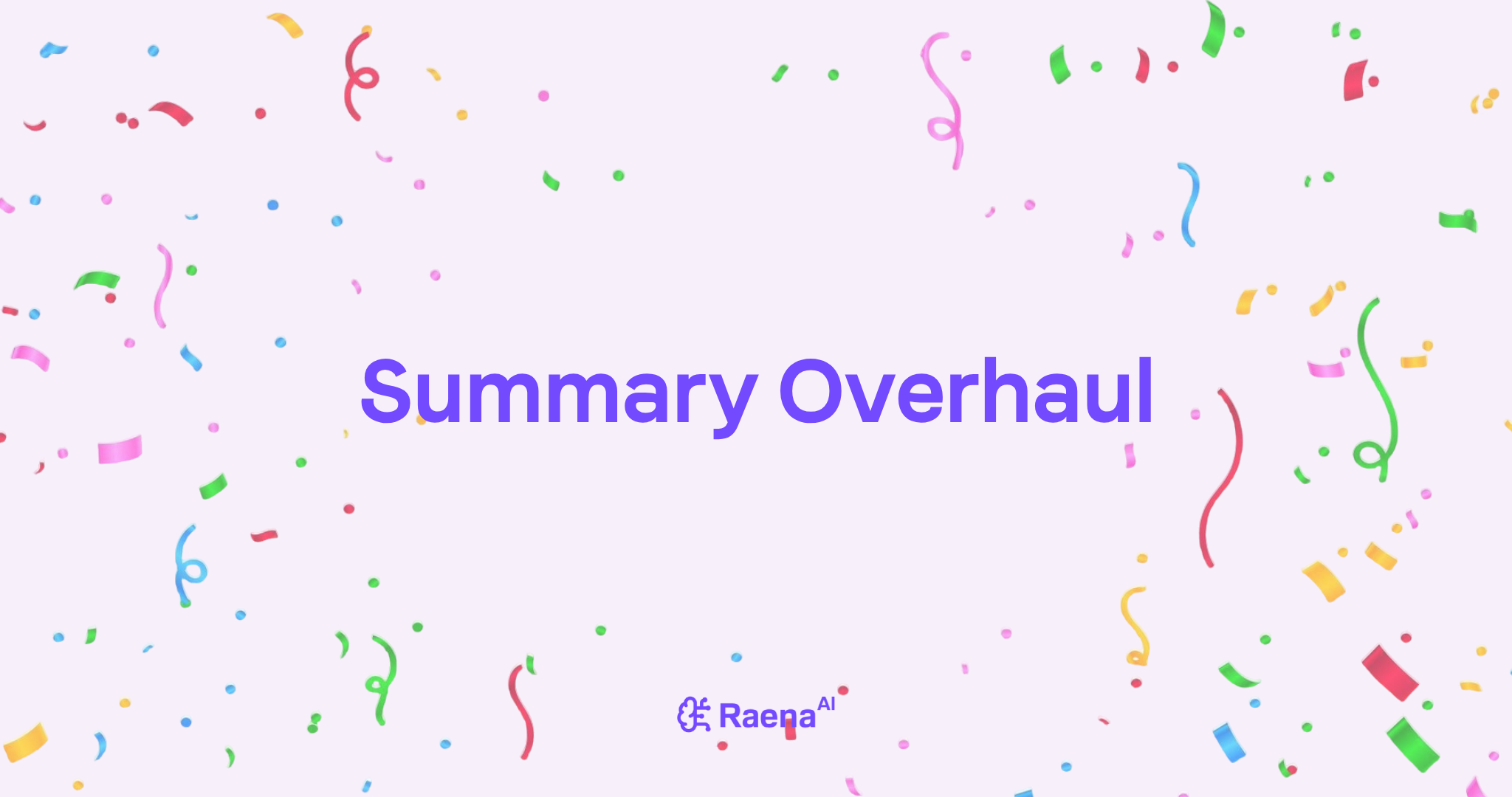 Weโ€™re excited to unveil a comprehensive update designed to enhance your experience with Raena AIโ€™s summary tools.