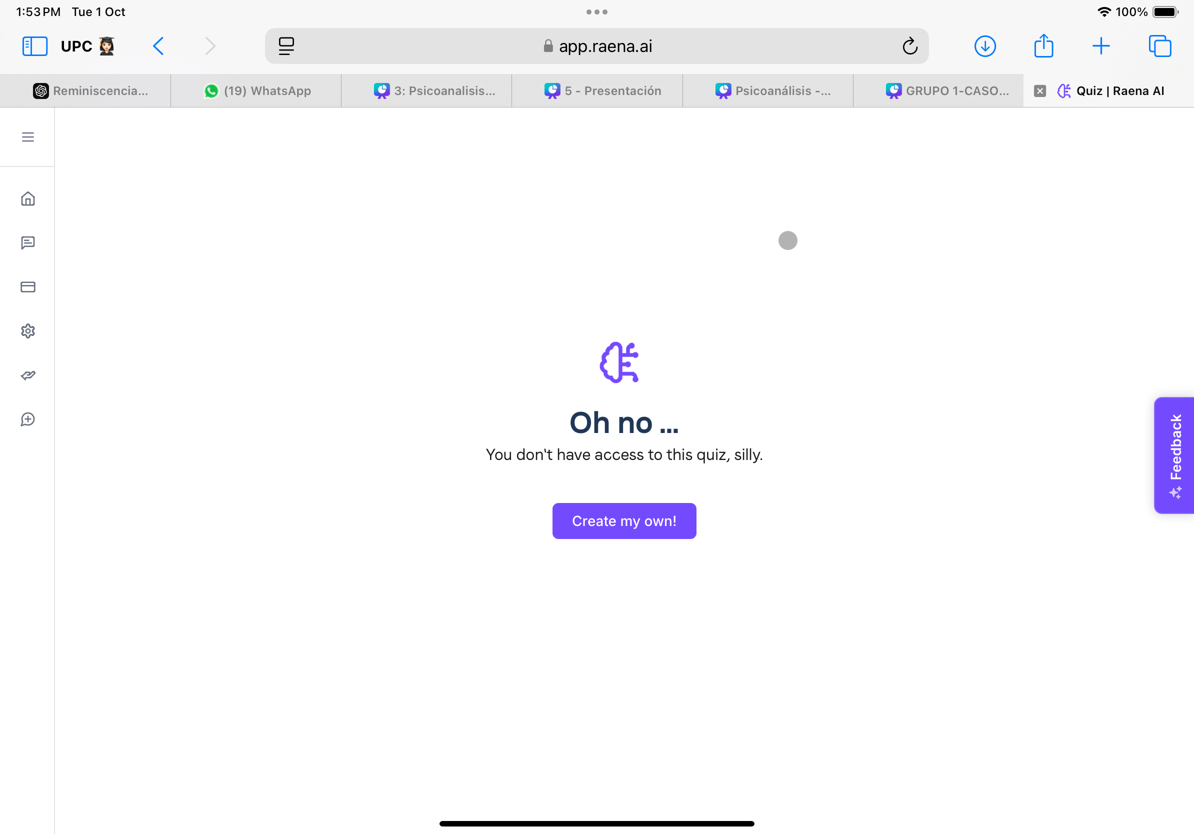 “You don’t have access to this quiz, silly“